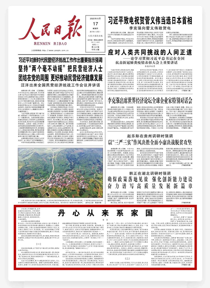 ?。?span style="font-size: 12pt;">來源:《人民日報》(2020年09月17日 第01版),原題:《丹心從來系家國》)